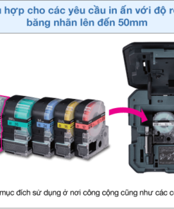 Khổ nhãn in: 4mm, 6mm, 9mm, 12mm, 18mm, 24mm, 36mm, 50mm (chiều ngang)